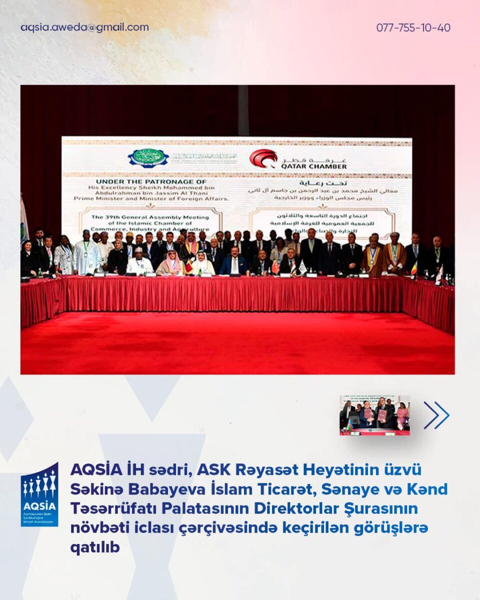 AQSİA İH sədri Səkinə Babayeva Qətərdə keçirilən İslam Ticarət, Sənaye və Kənd Təsərrüfatı Palatasının iclasında iştirak edib