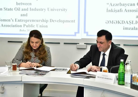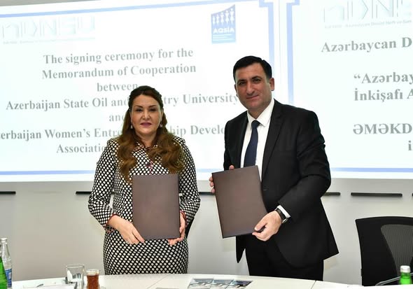 11 aprel tarixində Azərbaycan Dövlət Neft və Sənaye Universitetində (ADNSU) Azərbaycanda Qadın Sahibkarlığının İnkişafı Assosiasiyası (AQSİA) ilə universitet arasında əməkdaşlığa dair memorandum imzalanıb. Görüşdə AQSİA İH sədri Səkinə Babayeva, ADNSU rektoru Mustafa Babanlı, universitetin işçi heyəti, AQSİA İH üzvü Sona Hüseynova və qadın sahibkarlar iştirak edib.
