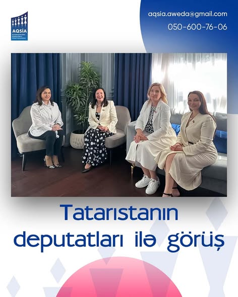 Azərbaycan Qadın Sahibkarlığının İnkişafı Assosiasiyasının (AQSİA) İdarə Heyətinin sədri Səkinə Babayeva və Tatarıstan Respublikasının Dövlət Şurasının qadın deputatları — “Merhamat – Mercy” assosiasiyasının rəhbəri Alsu Nabiyeva, deputatlar Lyudmila Rıbakova və Rüzilə Timarqaliyeva arasında ikitərəfli dostluq görüşü keçirilib.