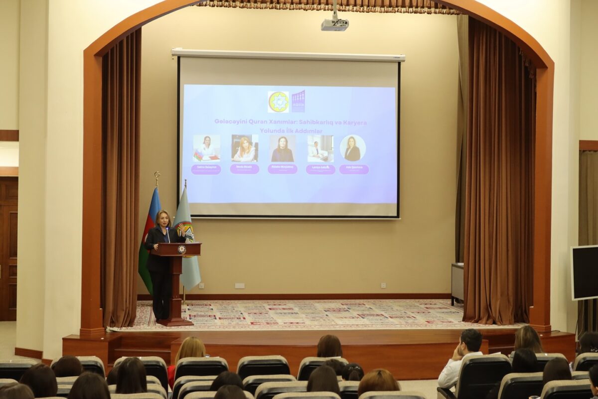 Tədbirin əsas məqsədi ali təhsil alan xanım tələbələrin sahibkarlıq və əmək bazarı imkanları ilə tanış olması, qadın sahibkarların praktiki təcrübələrinin paylaşılması və gənc xanımların təşəbbüskarlıq bacarıqlarının inkişafına dəstək göstərmək olub.